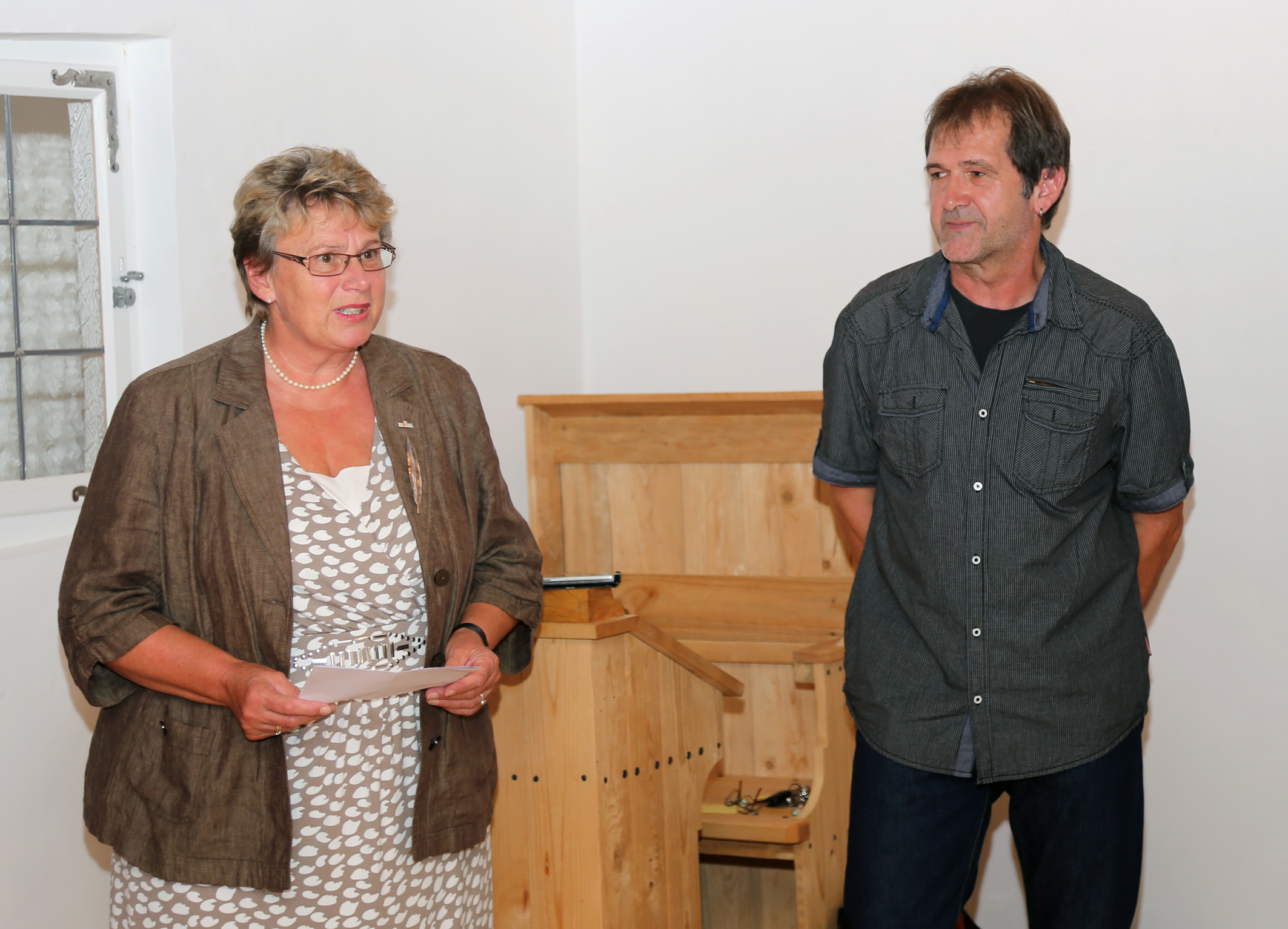 Zweite Bürgermeisterin Maria Feigl (li) und Vorsitzender Robert Beck (re.) eröffneten am Freitagabend vor großem Publikum die Ausstellung.